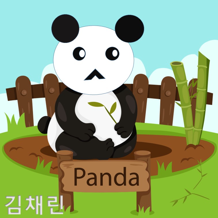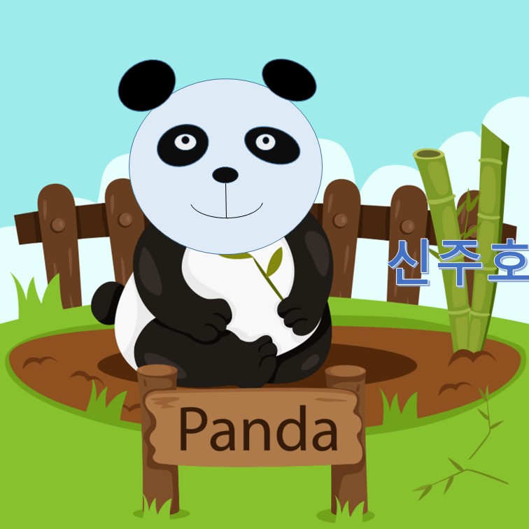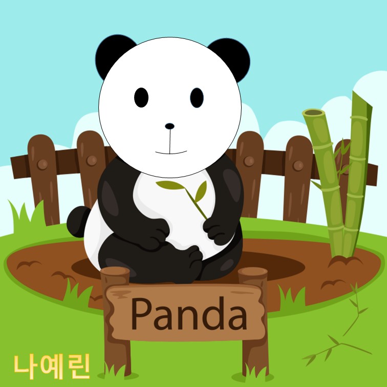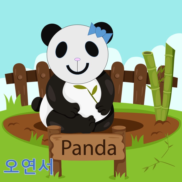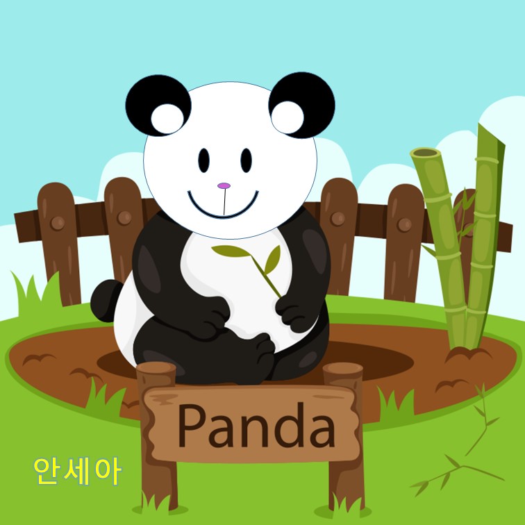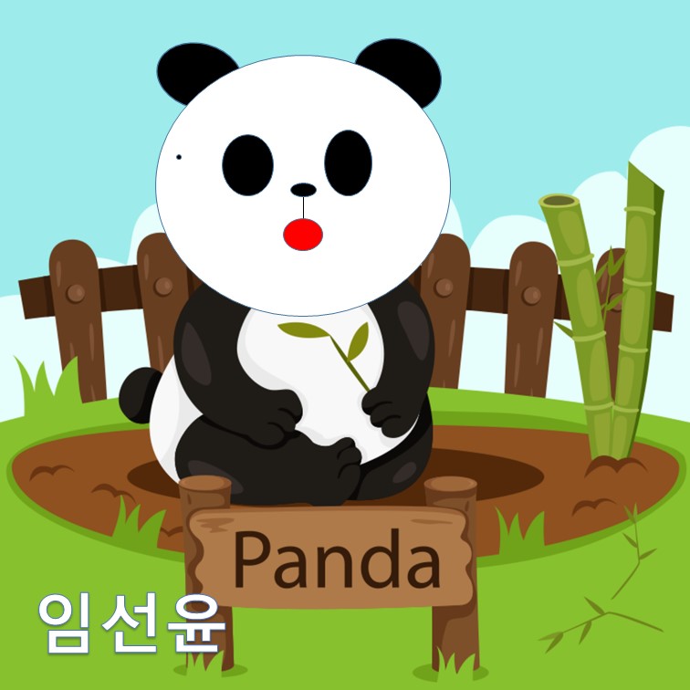 [삽입]-[도형]에서 원하는 도형 가져와서 도형을 가져와 크기와 방향 조정하고 정렬버튼을 이용해서 [맨 앞으로 가져오기],[맨 뒤로 가져오기]로 위 아래 조정하여 판다의 귀와 같은 부분을 자연스럽게 해보았습니다.