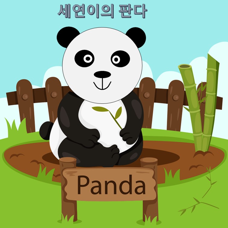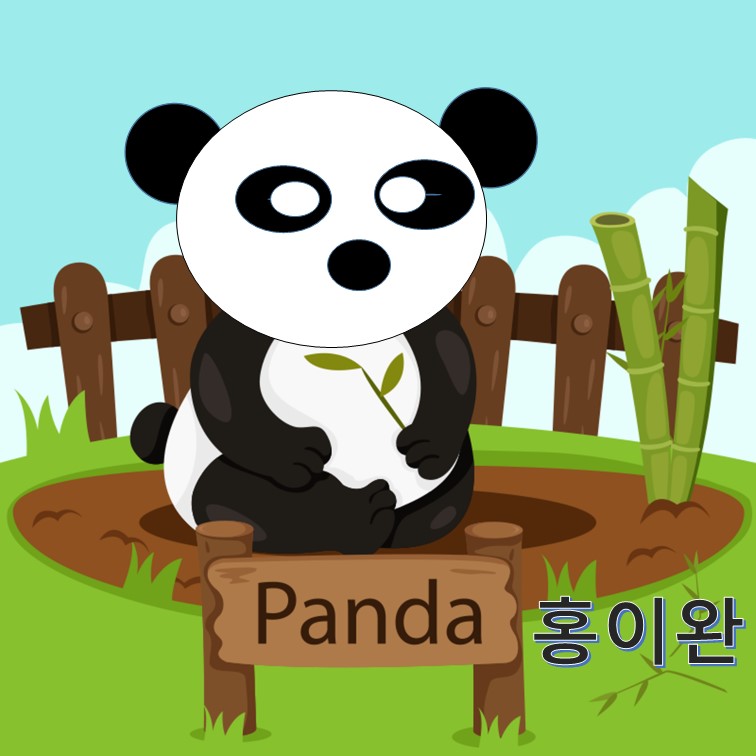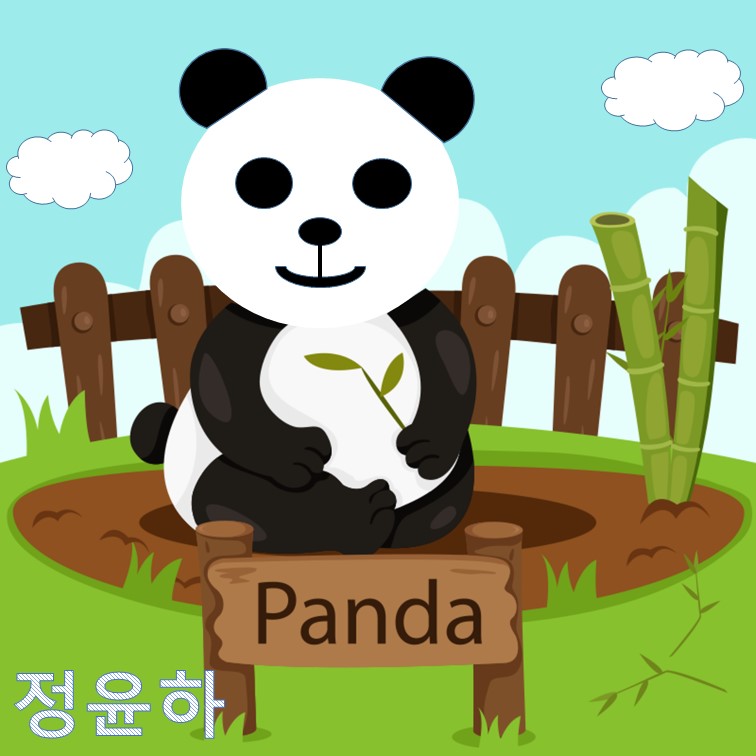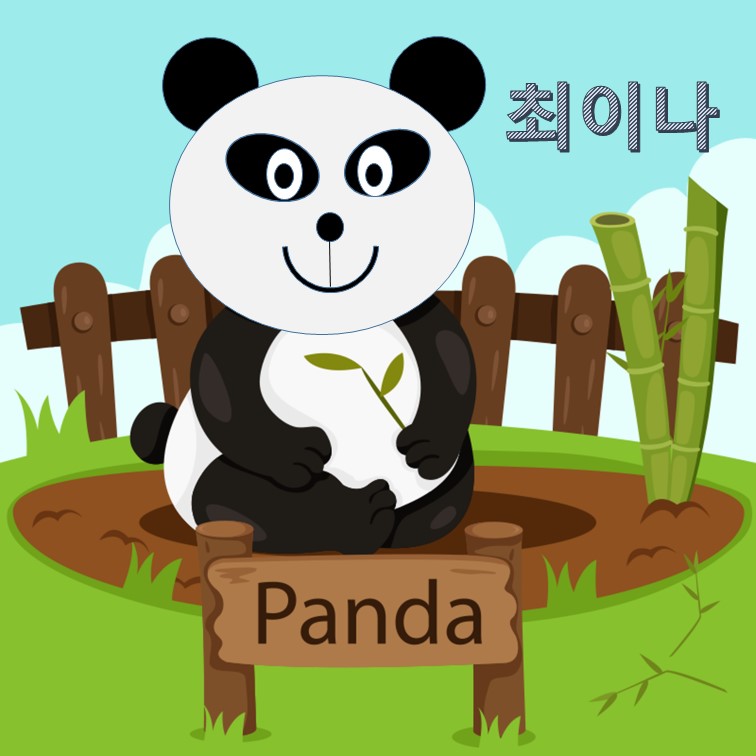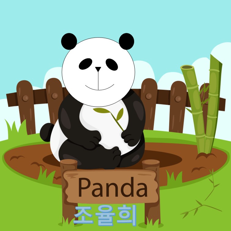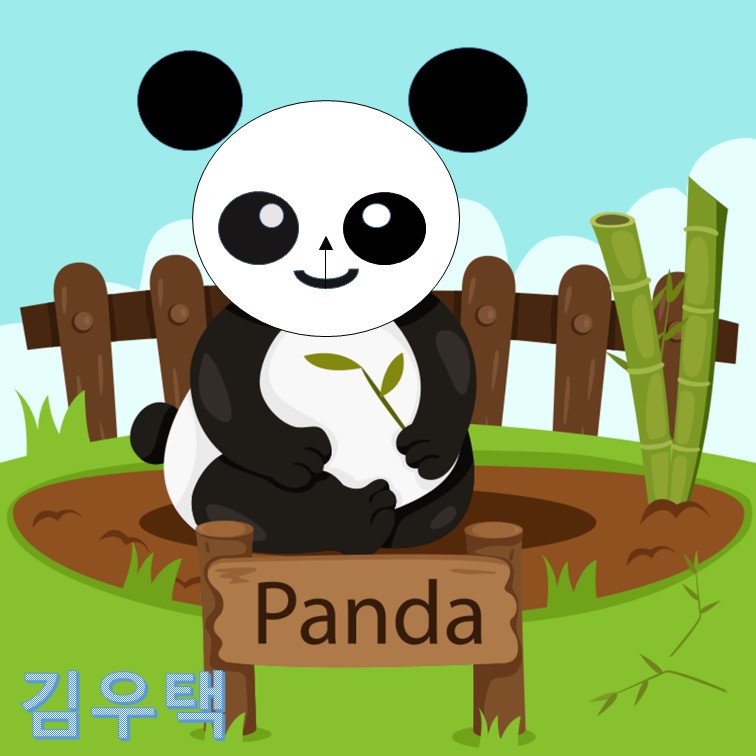[삽입]-[도형]에서 원하는 도형 가져와서 도형을 가져와 크기와 방향 조정하고 정렬버튼을 이용해서 [맨 앞으로 가져오기],[맨 뒤로 가져오기]로 위 아래 조정하여 판다의 귀와 같은 부분을 자연스럽게 해보았습니다.