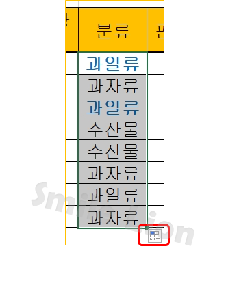 그럼 그것을 클릭해서 아래로 주욱 드래그를 해주는 것이 채우기 핸들입니다.